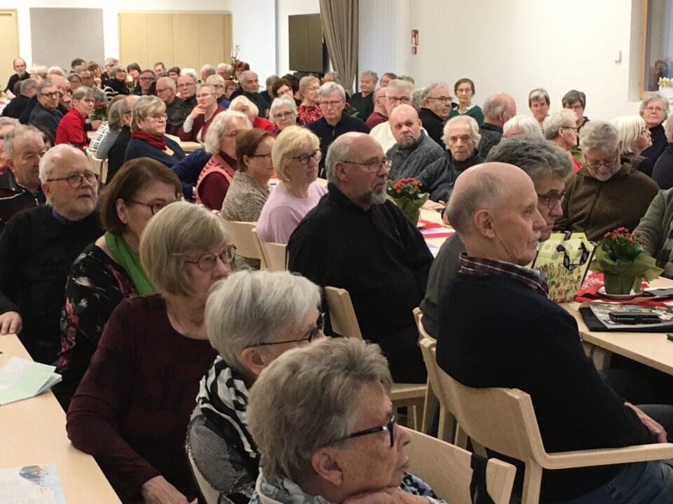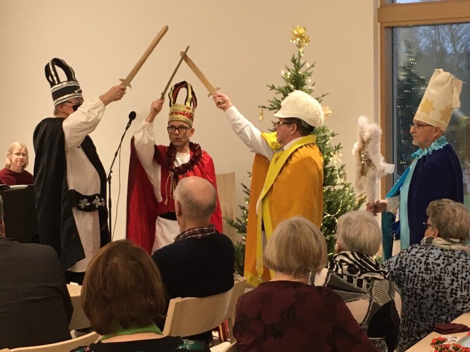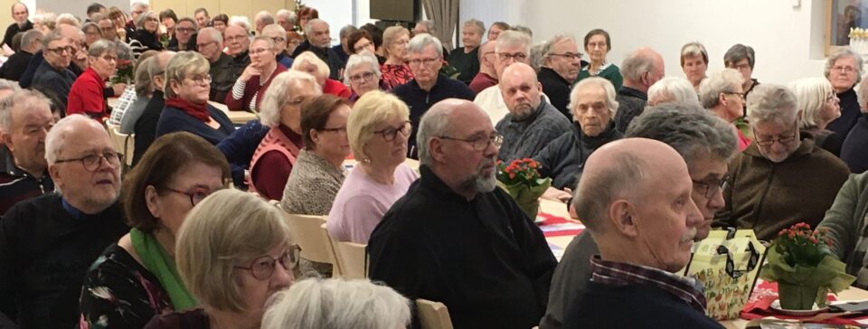 Kuukausitapaamisessa runsas osanotto. Seurakuntatalon kaikki istumapaikat olivat käytössä. Joulupuuron jälkeen ohjelmassa seurakunnan tervehdys, hopeakuoro sekä tietoiskuna Etapin ympäristökouluttajan laaja ja hyödyllinen selvitys jätehuollosta. Yllätysvieraana tiernapojat ja lopuksi arvonta ja joulutorttukahvit.